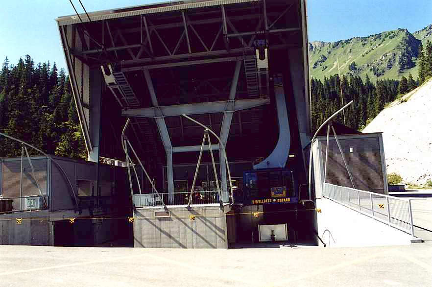 Nakonec se potvrdilo, že se musíme vrátit zpátky do Col du Pillon k lanovce. Lanovkou jsme vyjeli do stanice Cabane (2524 m), kde již měla být feráta. Na fotografiích můžete vidět pohled z lanovky směrem k Les Diablerets a potom i pohled na protijedoucí lanovku. Ačkoliv