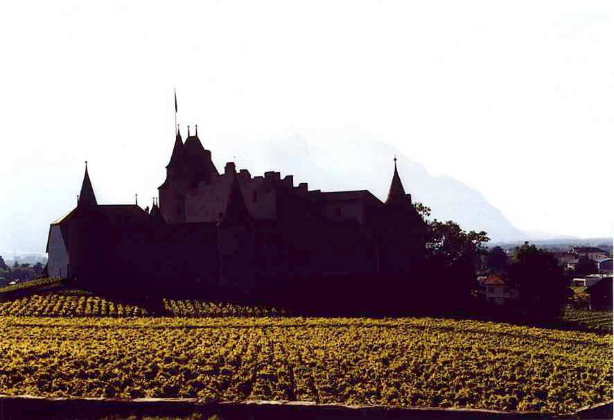 Odtud jsme již pokračovali směrem k Mont-Blancu. Přespat jsme chtěli ještě ve Švýcarsku, od hranic do Chamonix je to totiž asi jen 30 km. Cestou jsme se zastavili ještě v Aigle, kde jsme si prohlédli zejména stejnojmenný zámek (Château d'Aigle). Všude kolem jsou zde rovněž rozsáhlé vinice, na které je překrásný pohled. Přespávali jsme potom poblíž města Martigny. Zde jsme odbočili na cestu vedoucí do hor a spali jsme potom přímo na lesní cestě k jedné zapadlé vesničce. Směrem k silnici spala nejblíž Káťa, která měla strach, aby jí někdo třeba nepřejel ruku :-)