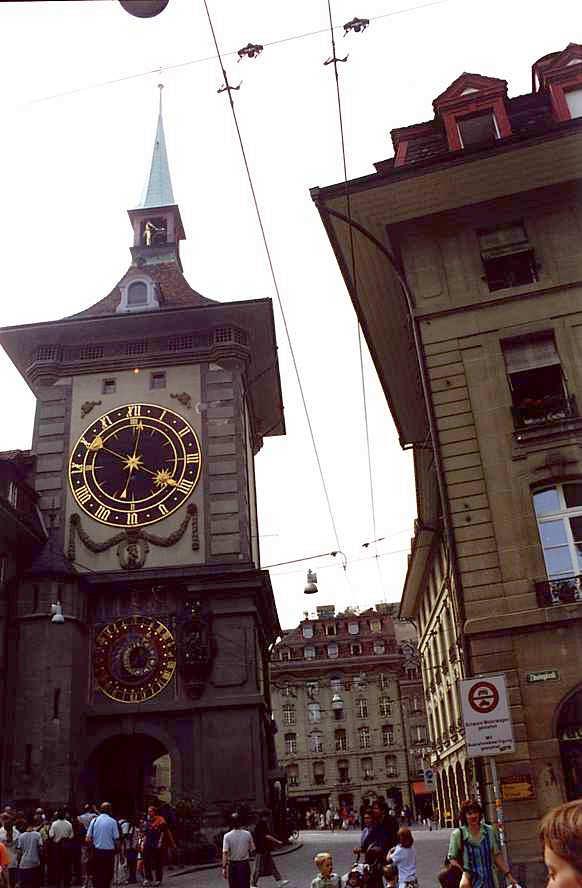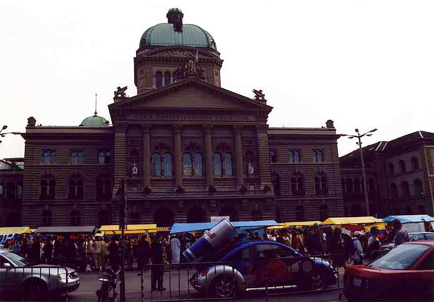Prošli jsme tedy asi nejznámější ulici Kramgasse, kde se nachází i orloj Zytgloggeturm, obojí si můžete prohlédnout na fotografiích. V průvodci psali, že se rozhodně vyplatí počkat na celou, kdy se orloj rozhýbe. Vylíčili to opravdu jedinečně, že jsme si to rovněž nemohli nechat ujít. Se Staroměstským orlojem se to ovšem srovnat nedá... Na zpáteční cestě k autu jsem si ještě vyfotil Bundeshaus a mohli jsme pokračovat.